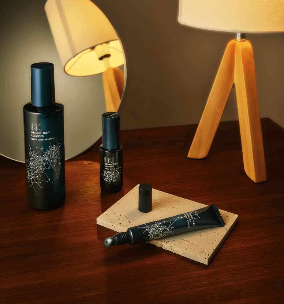 リンクルターン アドバンストは、 1品で美白*としわ改善を効率的に叶えながら、ハリ満ちる肌に導くもっと本気の薬用エイジングケア※2ライン。 毎日使い続けたくなる、機能と心地よさを両立したこだわりのプロダクトが あなたに寄り添い未来を切り開く、頼れる存在に。