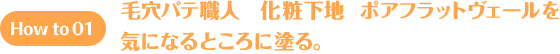 1. How to 01 毛穴パテ職人 化粧下地 ポアフラットヴェールを気になるところに塗る。